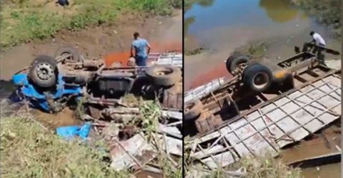 VÍDEO: Caminhão Boiadeiro capota na região de Patos, vários animais morrem e motorista fica ferido
