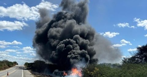 Caminhão carregado com soja e milho tomba na Serra de Teixeira, região de Patos