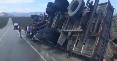 Apesar do susto, o motorista do caminhão não se feriu. A PRF esteve o local e adotou as medidas cabíveis ao caso.