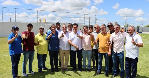 Em evento com presenças de políticos, gestores e representantes comunitários, Luiz Claudino entregou uma nova escola e a reforma do estádio de futebol