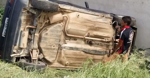 Apesar da gravidade do acidente, os ocupantes do veículo tiveram apenas escoriações leves. O motorista não soube informar o que teria motivado o capotamento.