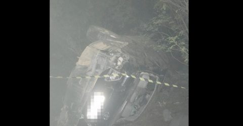 Segundo moradores, o motorista conduzia seu veículo, mas perdeu o controle do volante em uma curva e o carro capotou.