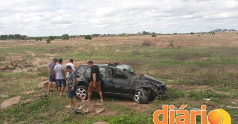 Acidente em rodovia do Sertão deixa uma família ferida, após motorista perder controle e capotar o carro