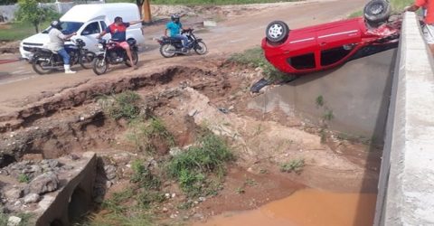 As imagens impressionam ao ver que por muito pouco o veículo não caiu no rio que fica abaixo da ponte.