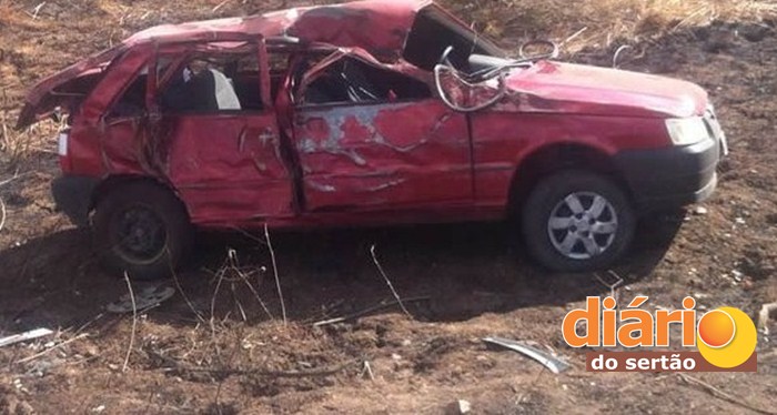 Carro fica destruído após capotamento na cidade de Pombal e deixa uma pessoa ferida