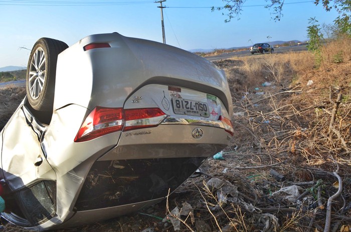 Para evitar uma tragédia, o motorista fez uma manobra arriscada, puxando o carro para o acostamento, mas devido a rapidez, o carro capotou diversas vezes