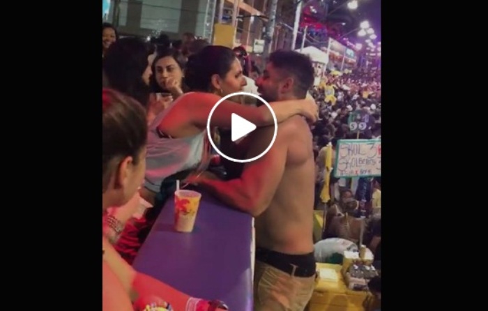 O registro foi gravado durante a passagem do trio elétrico da Banda Eva