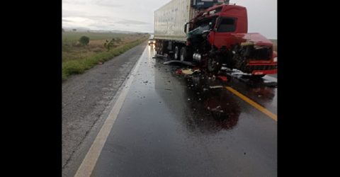VÍDEO: Carretas com combustível e algodão colidem e pegam fogo na BR-101; motorista tem 100% do corpo queimado