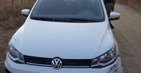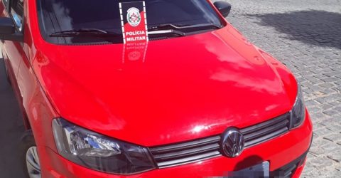 A PM localizou o veiculo de cor branca, placa PDY – 5437/ PE, a qual foi consultada e constatada a existência de queixa de roubo.