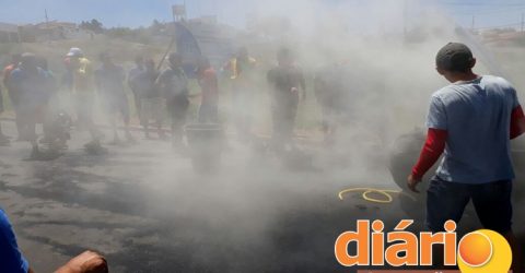 Populares que viram ao desespero do motorista, prontamente foram ajudar com baldes de água antes que o fogo se alastrasse.