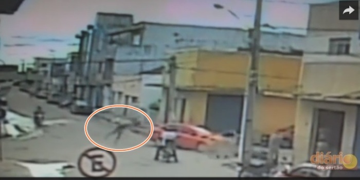 A imagem é impressionante, mas o jovem se levantou após a queda e tentou andar, em seguida caiu e foi socorrido pelo Samu.