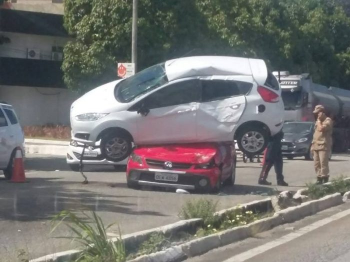 Jovem perde controle e colide com rotatória no Centro de Cajazeiras; Carro ficou destruído e ainda bateu em outro. VEJA FOTOS E VÍDEO!