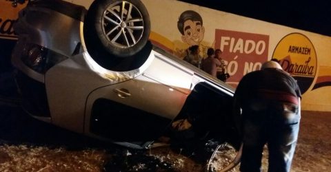 Os dois veículos capotaram em frente a uma loja de conveniência