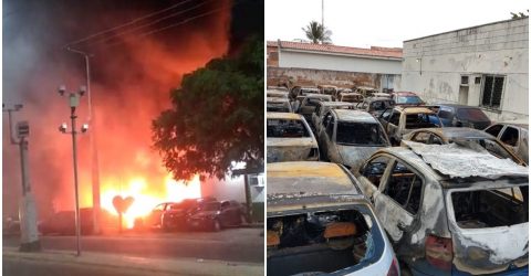 Fogo teve início por volta das 3 horas e se espalhou rapidamente entre os carros.