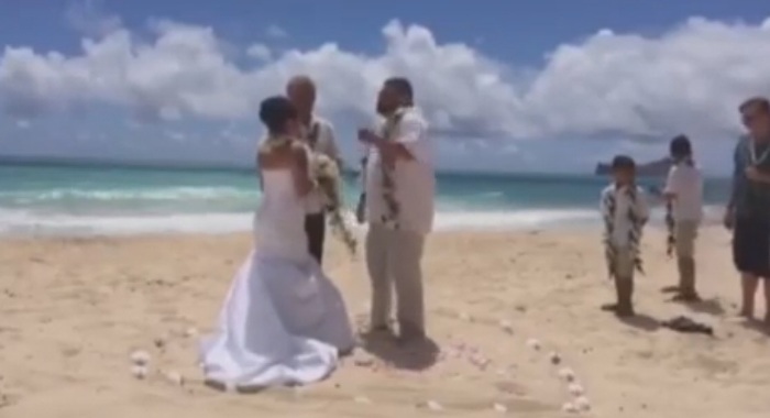 O vídeo do momento trágico vivido pelos noivos, identificado como Jason e Sandy, viralizou na internet