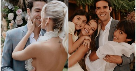 Luca e Isabella, filhos de Kaká em seu relacionamento com Carol Celico, entraram com as alianças.