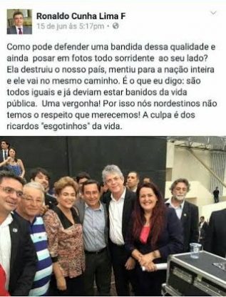 Irmão do senador Cássio chama presidente Dilma de "bandida"