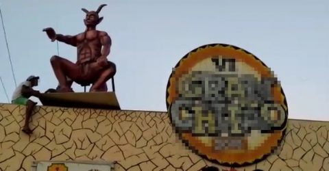 Estátua do assobiador faz parte da decoração do GranChitão, em Granja