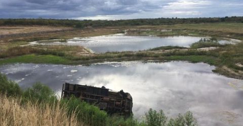 O caminhão em que ele e seu motorista viajam ficou muito destruído.