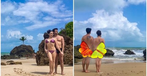 Em sua página no instagram, a atriz registrou o passeio na praia de Tambaba, conhecida como praia de Nudismo.