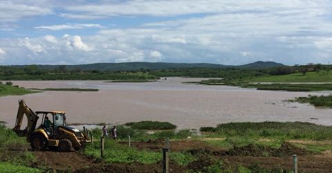 Segundo moradores, a água que escorre do rio está caindo no açude de São Gonçalo.