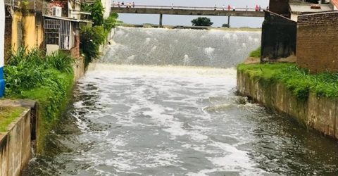 Com as fortes chuvas, a cachoeira das Pedras Brancas transbordou