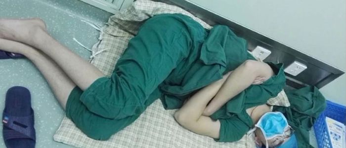 Foto de médico dormindo no chão após turno de 28 horas comove web