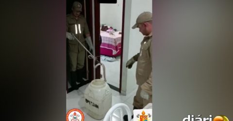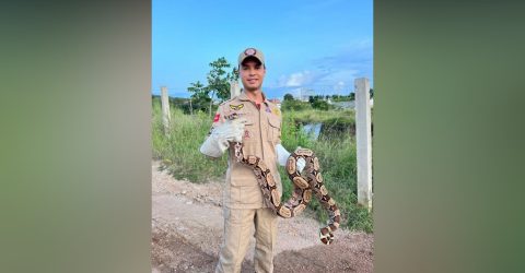 O Corpo de Bombeiros foi acionado para recolher a cobra. No local, os militares realizaram as técnicas necessárias para capturar o animal. Vários moradores acompanharam a ação dos militares