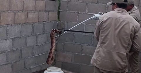 Um vídeo compartilhado nas redes mostra a sucuri enrolada no homem e outras pessoas tentando resgatá-lo puxando a cobra pela cauda. O momento mais surpreendente é quando a vítima tenta se livrar da sucuri mordendo o animal