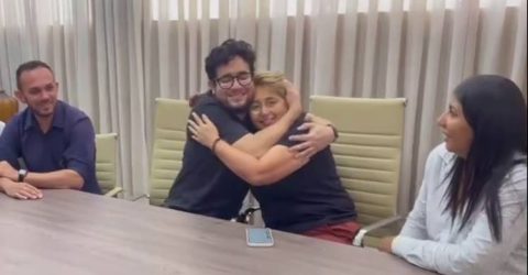 Em vídeo divulgado nas redes sociais, nesta quinta-feira (15), a prefeita Leninha Romão comemora o retorno do jovem ao seu governo