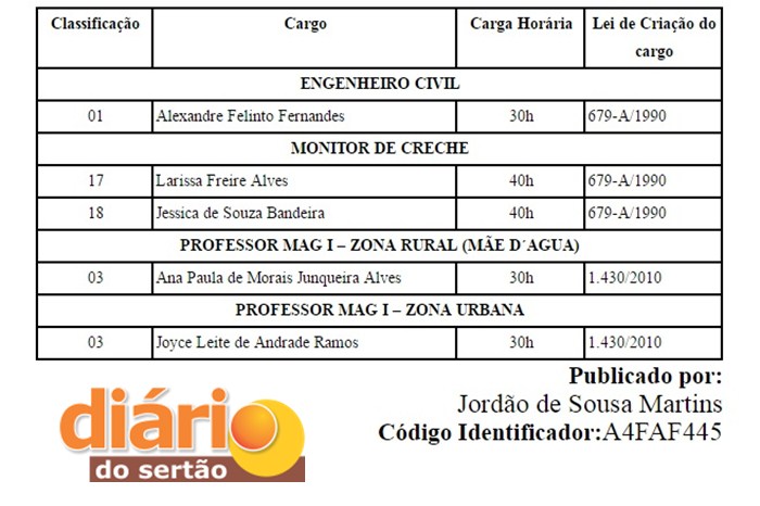 As vagas chamadas são: engenheiro civil, monitores de creche e professores