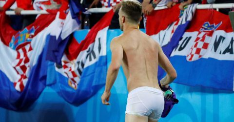 Rakitic esquece o frio e joga todo o uniforme para a torcida