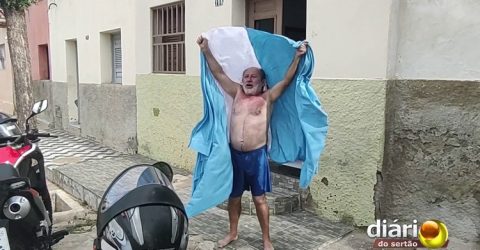 Leto Fernandez reuniu amigos e familiares para acompanhar a partida ao vivo e fez a festa nas ruas de São João do Rio do Peixe com a bandeira da Argentina comemorando o título mundial