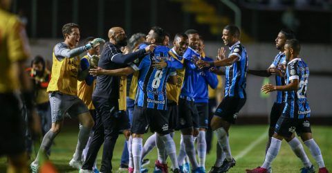A vitória do Grêmio foi obtida graças a gols de Kevin, no primeiro tempo, e de Kauan Kelvin, de cabeça na etapa final