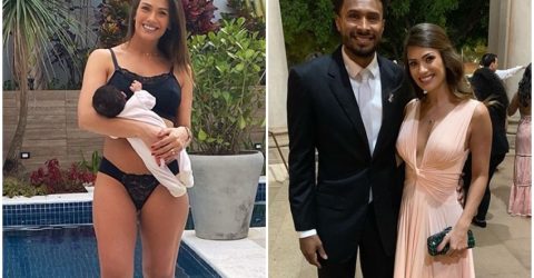 Nas redes sociais, a modelo compartilhou um clique segurando a bebê,