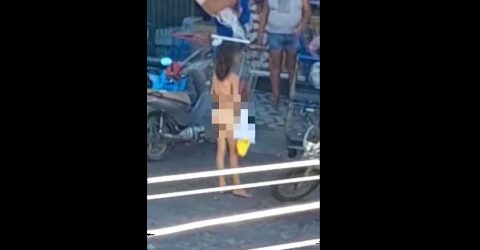 VÍDEO: Em aparente estado de transtorno, mulher fica nua em frente a supermercado em Cajazeiras