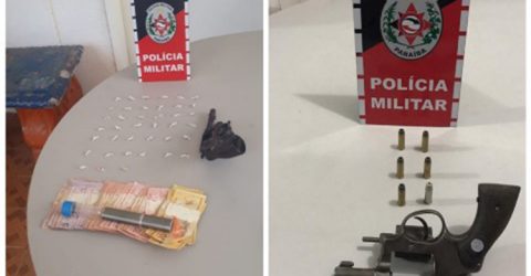 Com o homem foi encontradas 39 pedras de substância análogas ao crack, um revólver calibre 38, seis munições intactas e R$ 400,00 em cédulas.
