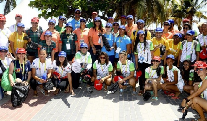Liderados por Ricardo, Mariany Nonoka e Gilda Oliveira, atletas e técnicos dos Jogos Escolares participaram da ação social na Praia do Cabo Branco neste domingo