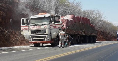Carreta de Ponta Grossa (PR) começou e pegar fogo provavelmente devido a um aquecimento no motor