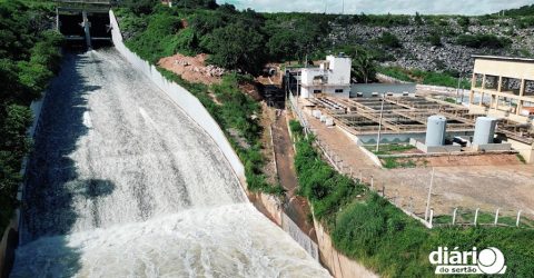 O Açude de São Gonçalo começou a sangrar no início da manhã desta quinta-feira (30) e já segue com cerca de 2 cm em sua lâmina. Nas próximas horas será aberta uma válvula, inicialmente com 10 m³ por segundo