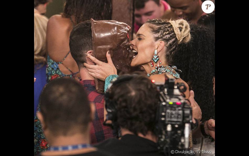 Fernanda Lima mordeu uma máscara feita de chocolate usada por José Loreto no 'Amor & Sexo' deste sábado, 19 de março de 2016