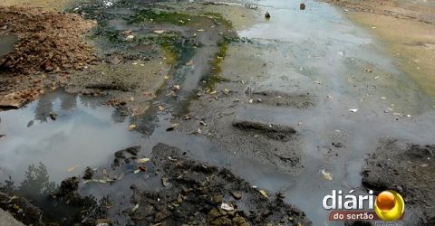 De acordo com professor que mora no local, buraco feito em obra causou esgoto a céu aberto que dificulta a mobilidade, exala mau cheiro e pode atrair doenças