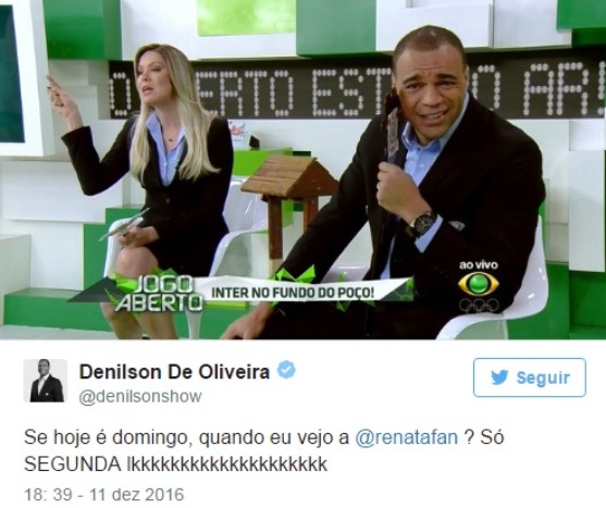 Denílson se antecipa ao 'Jogo Aberto' e já começa a zoar Renata Fan