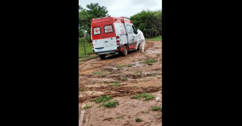 De acordo com um morador, a ambulância ficou atolado na entrada da comunidade porque o acesso é por uma estrada de barro que estava alagada da chuva