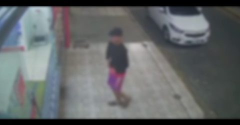 As imagens mostram que o suspeito passa caminhando pela calçada da farmácia, localizada na Avenida Engenheiro Carlos Pires de Sá, e instantes depois ele retorna, entra e anuncia o assalto