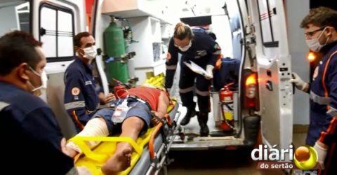 Exclusivo: pai e filho sofrem acidente de moto na cidade de Sousa e são socorridos pelo SAMU ao Hospital Regional. Fotos e vídeo!