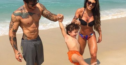 Em seu Instagram, Jaque publicou um momento em que oferece o suplemente ao filho: "Você quer Whey do que? Vou pôr pra você"