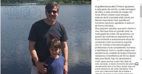 Na mensagem, o doutor Guilherme Carvalho descartou a suspeita de H1N1 após exames e pelo fato do seu filho também já ter sido vacinado.
