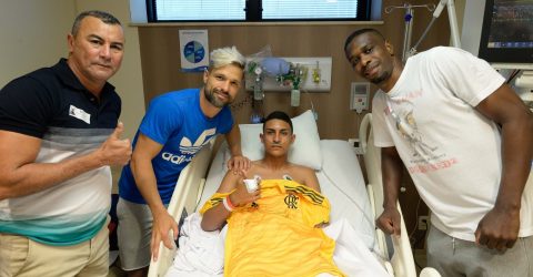 Willian Arão, Diego, Juan, Vitinho, Everton Ribeiro, Rhodolfo, Diego Alves e outros do elenco saem do treino no CT direto para ver Cauan Emanuel e Francisco Dyogo