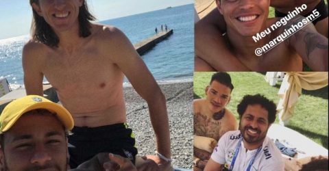 Neymar e jogadores da seleção curtem folga em praia de Sochi